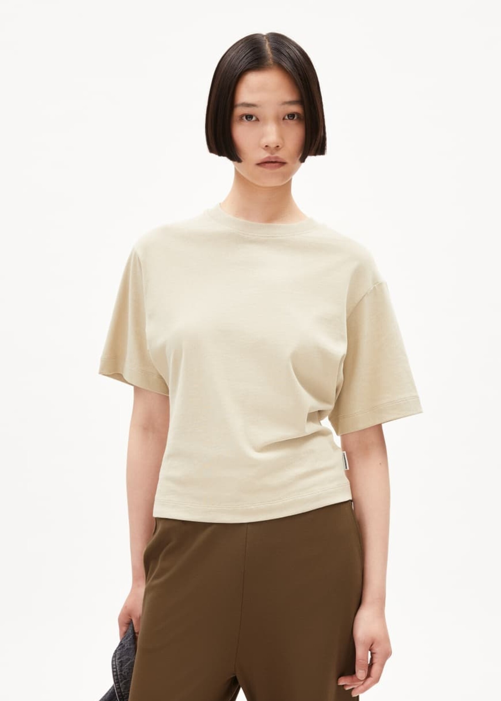Discover our HERSILIAA T-shirt! This short-sleeved shirt features a tailored fit and wide-cut sleeves for a special look. Made from heavy organic cotton with recycled content, this T-shirt is not only comfortable on the skin, but also stylish. An absolute must-have for your closet!