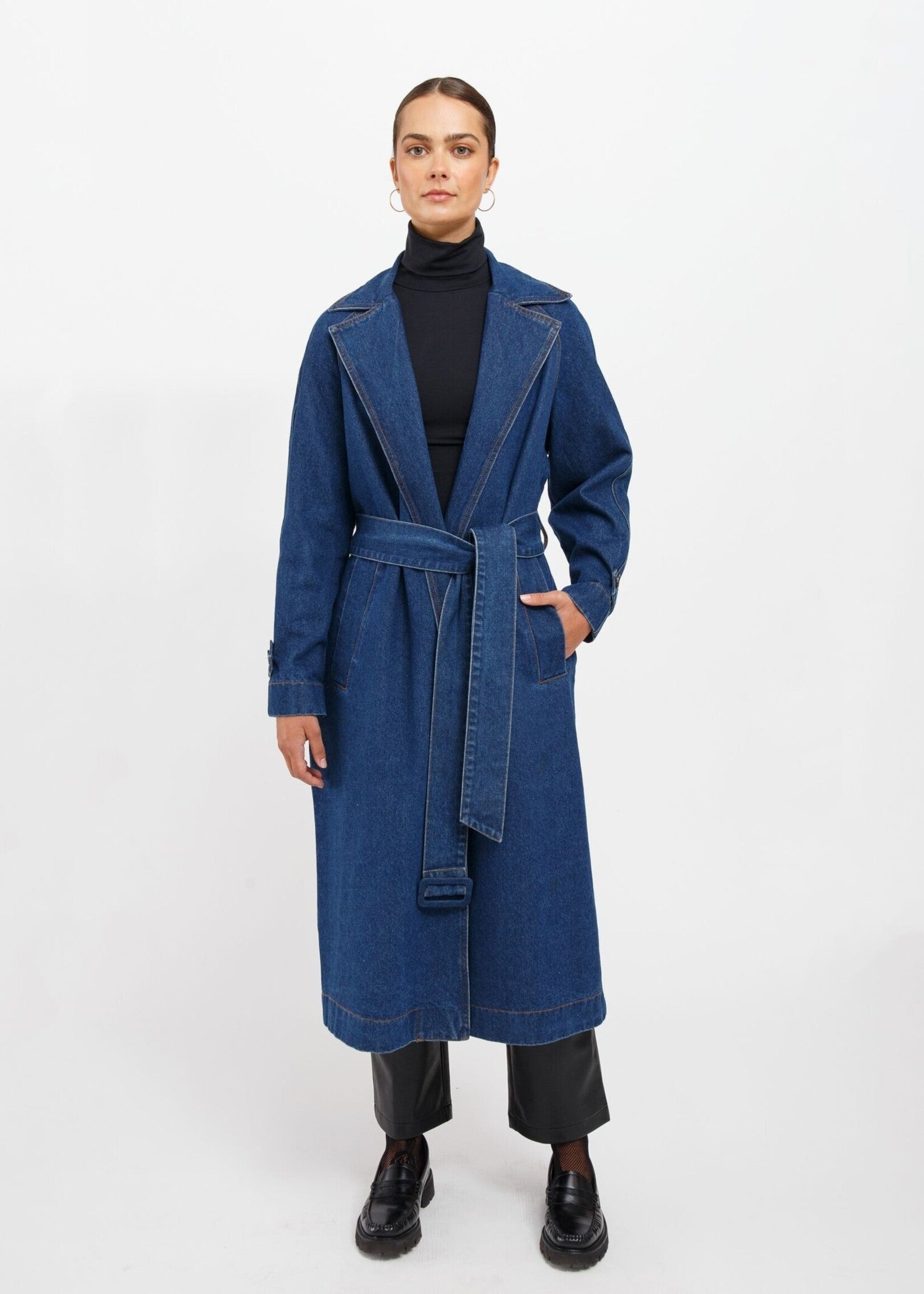 Unique and versatile, you'll finish all your looks in defined style with The Caitlin denim trench coat from Brunette The Label.