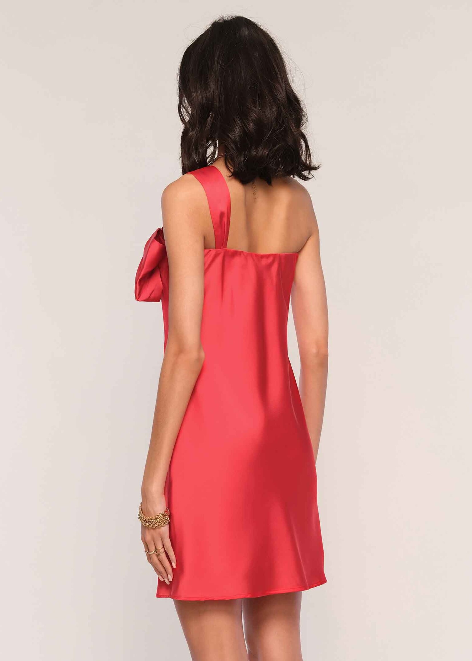 The Garcia Dress is our favorite mini dress for party season. It is made from hammered satin and features an asymmetric bow at the wearer's left shoulder. The dress has a slim yet effortless fit.