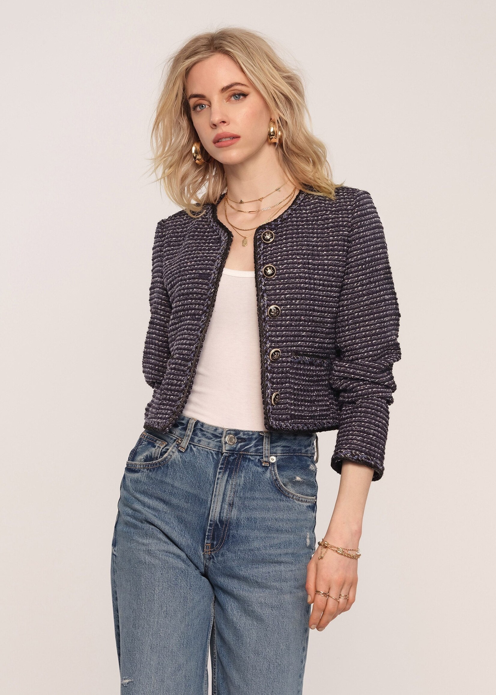Meet our Billie Blazer, the perfect going-out blazer in a fun novelty tweed. It has a novelty button closure and braided detailing along the edges. Layer over your favorite tank and denim for an on the go look.
