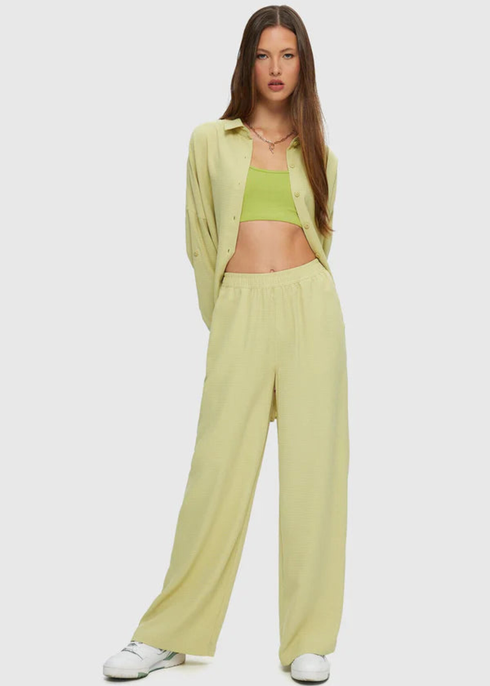 These beach pants feature an elastic waistband with deep pockets and a wide leg silhouette for a classy look.
