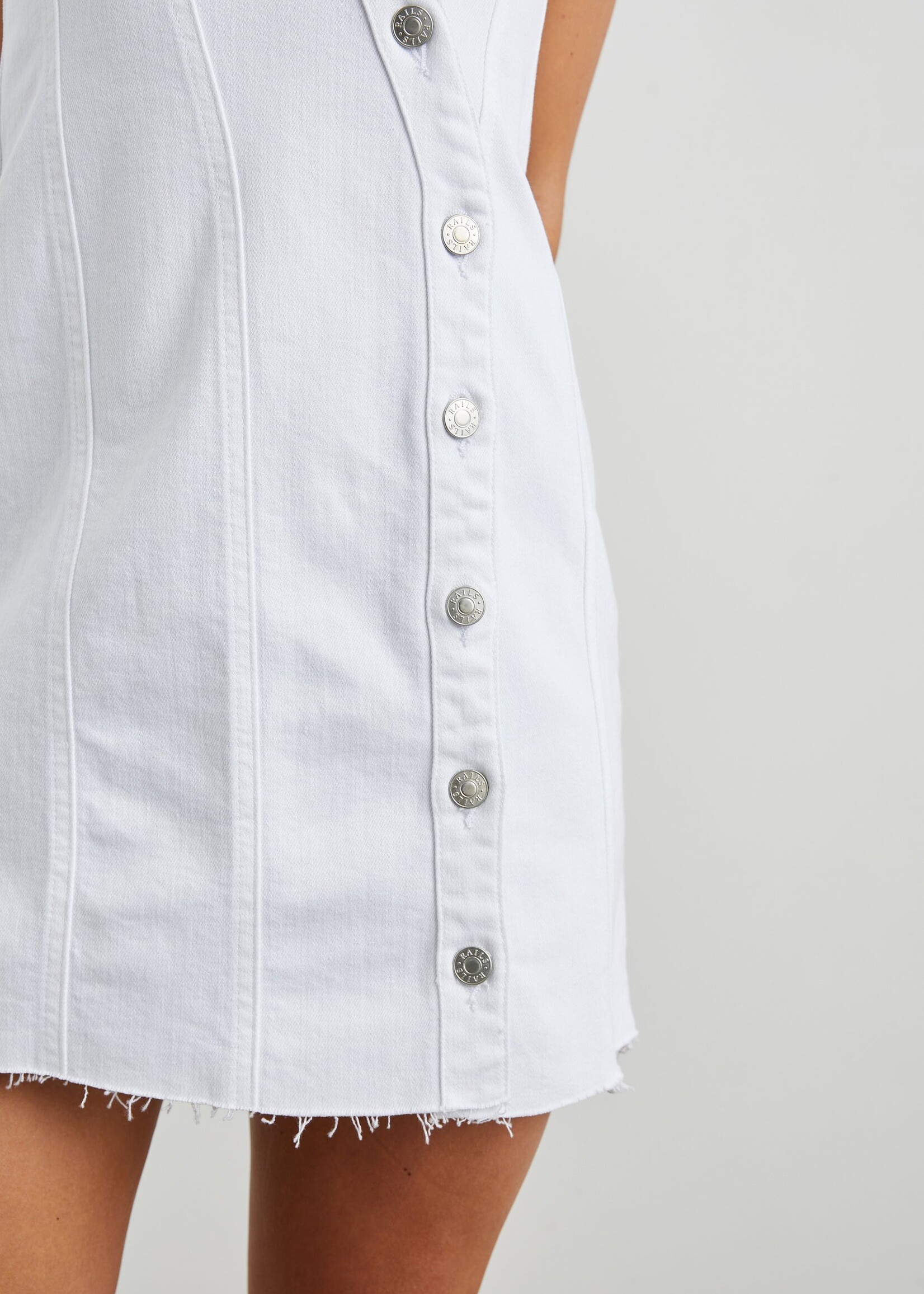 The denim dress elevated to new heights. Complete your summer closet with the Strand, a sleeveless mini dress featuring light stretch fabric and flattering asymmetrical style lines to give you an hourglass shape.