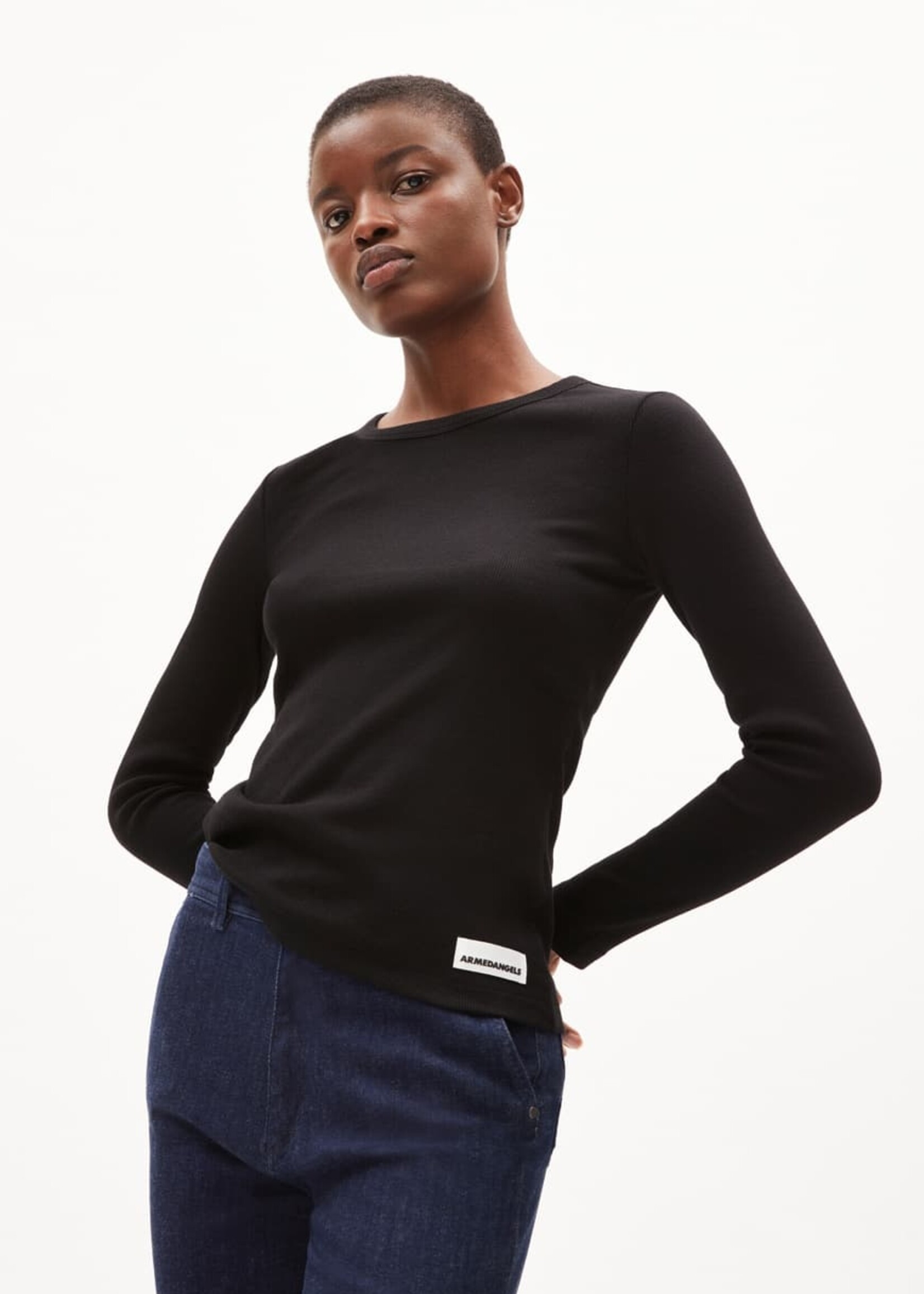 T-shirt à manches longues coupe régulière en mélange de coton biologique