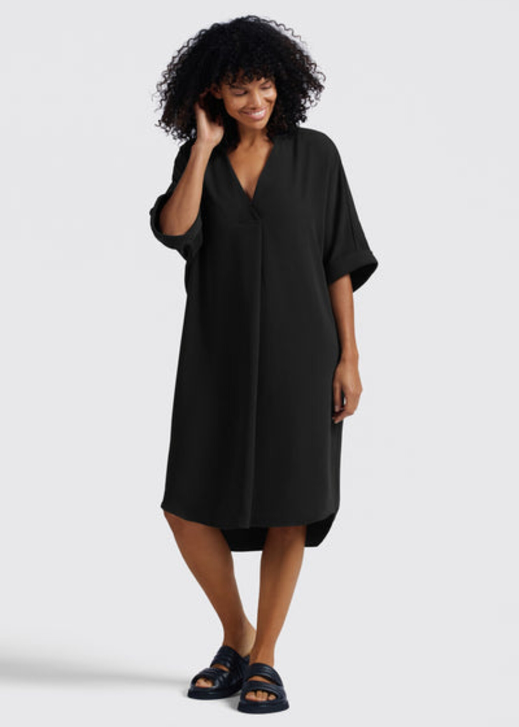 • Yaya Women YAYA Robe À Manches Courtes Pliées - Washed Black